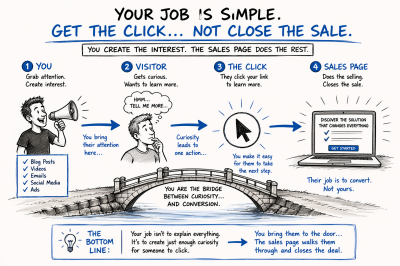 When you’re an affiliate marketer, your primary goal is to drive traffic to the merchant’s sales page. It’s not your job to sell the product directly; that’s what the sales page is for. Your job is to generate interest, spark curiosity, and entice your audience to click through to learn more.