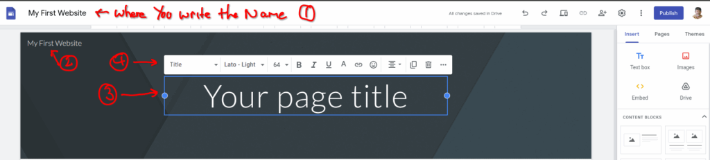Now if you click on “Your Page Title” you will see a Cursor and this is how you can change the text to your hearts content…