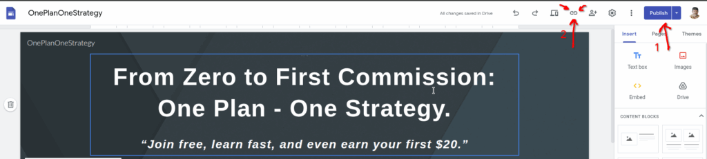 There’s nothing like a good example. So I’ve created one such beast… (which you can see above already…) and the link is https://sites.google.com/view/oneplanonestrategy/home